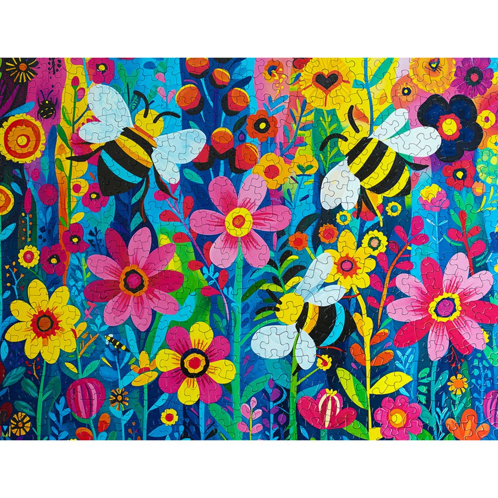 Step into the enchanting world of the "Busy Bee Garden" 500-piece puzzle, beautifully illustrated by the talented Michael David Ward. This puzzle is designed for a quick and enjoyable puzzling experience, perfect for adults or family game nights. The scene transports you to a vibrant garden where busy bees flit among blooming flowers, bringing nature's beauty to life. Ward's intricate attention to detail captures every petal and insect, creating a whimsical, colorful masterpiece. As you piece together the puzzle, you'll discover more of the garden's charm with each fragment, showcasing nature's splendor.