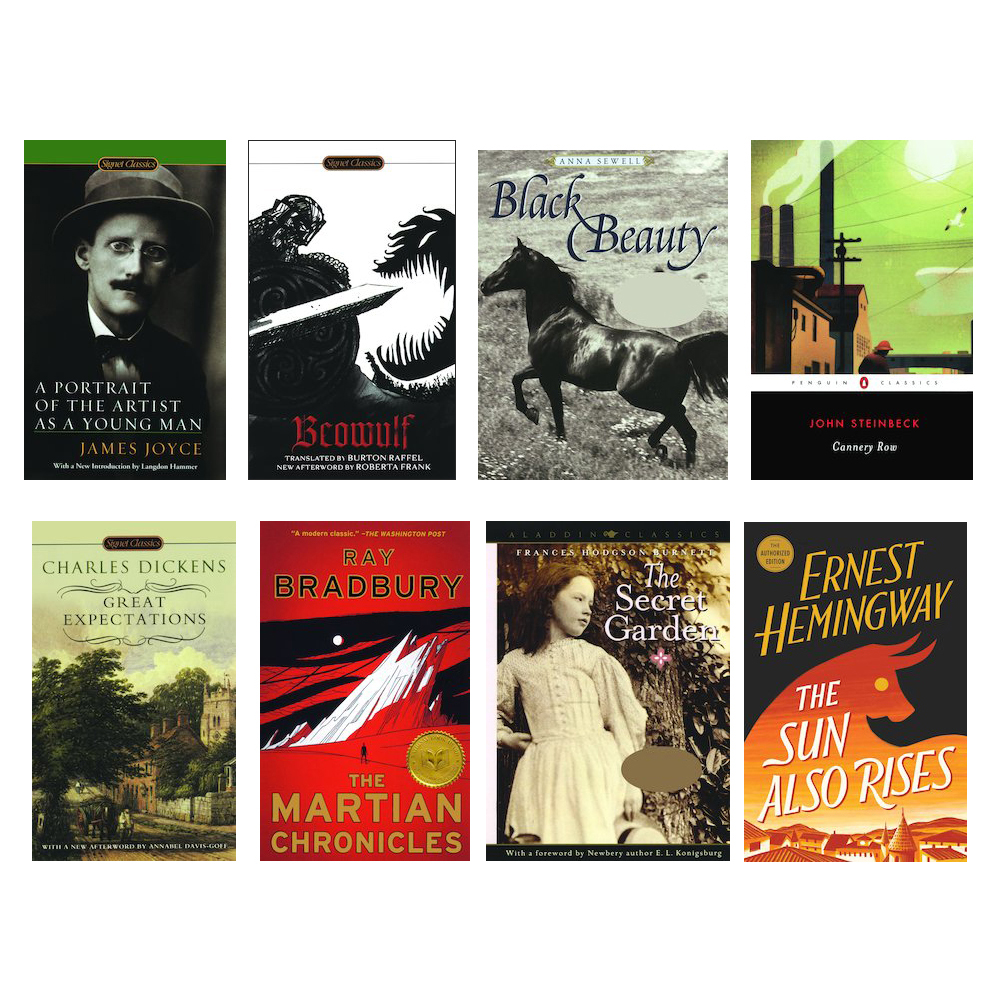 | Black Beauty | Cannery Row | Great Expectations | The Martian Chronicles |