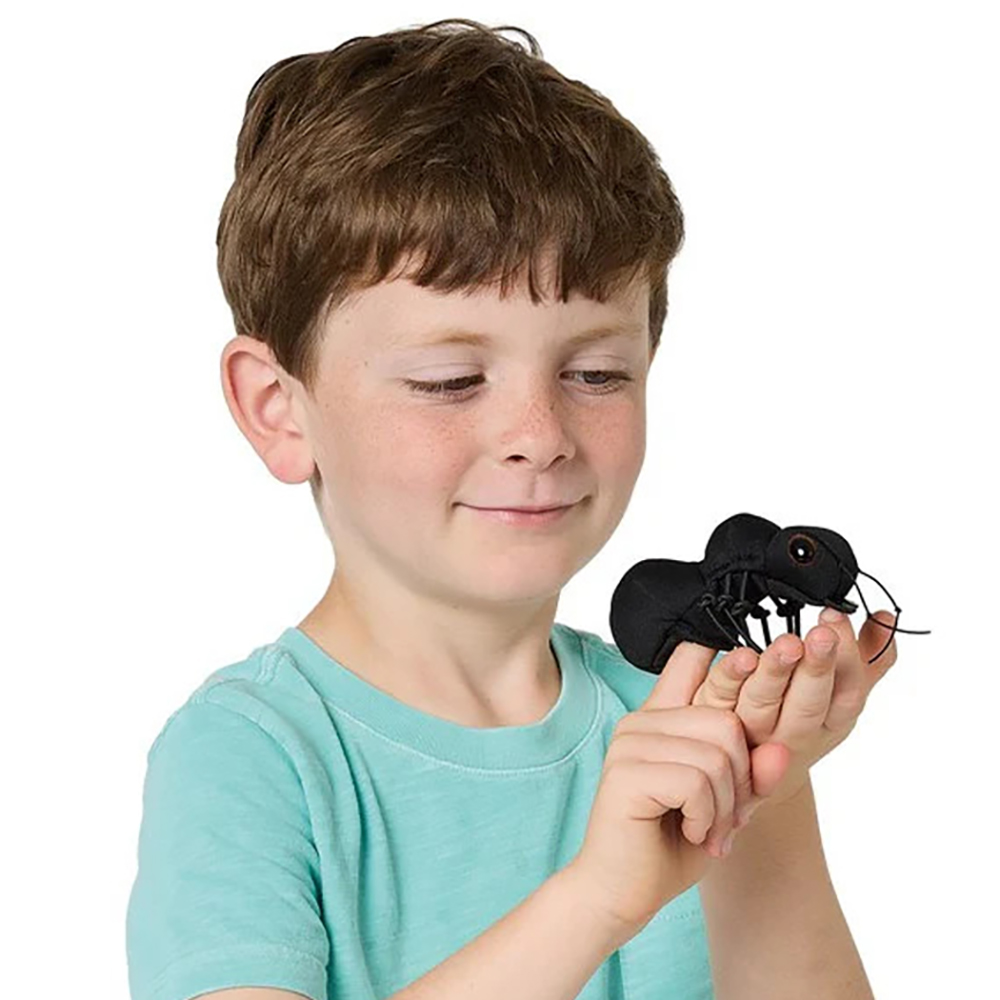 Take along a pint-sized pal with the Folkmanis® Mini Ant Finger Puppet! This tiny, sleek black critter fits perfectly on your finger, ready to scurry into your stories filled with energetic charm. Packed with hardworking spirit and big personality in a small package, this mini ant turns every narrative into a lively adventure ideal for storytelling wherever you wander!