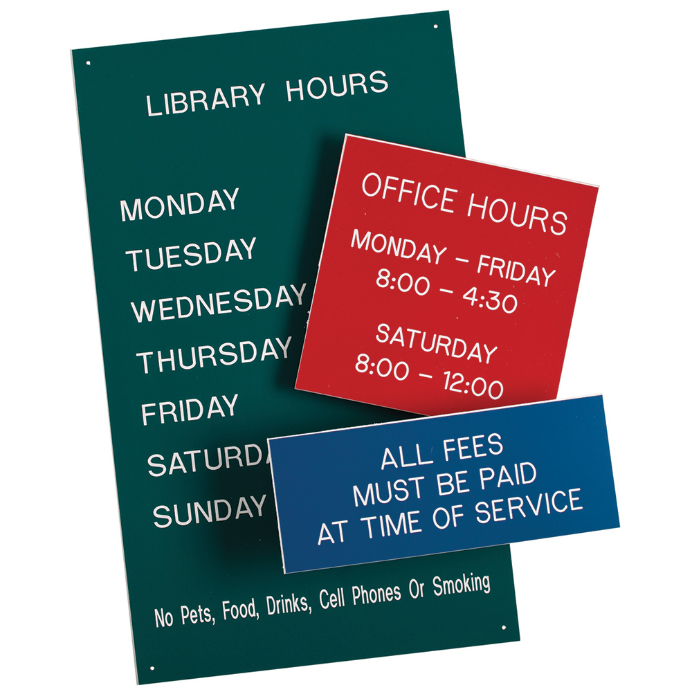 Identify rooms, create custom messages, display hours of operation or convey special directions!