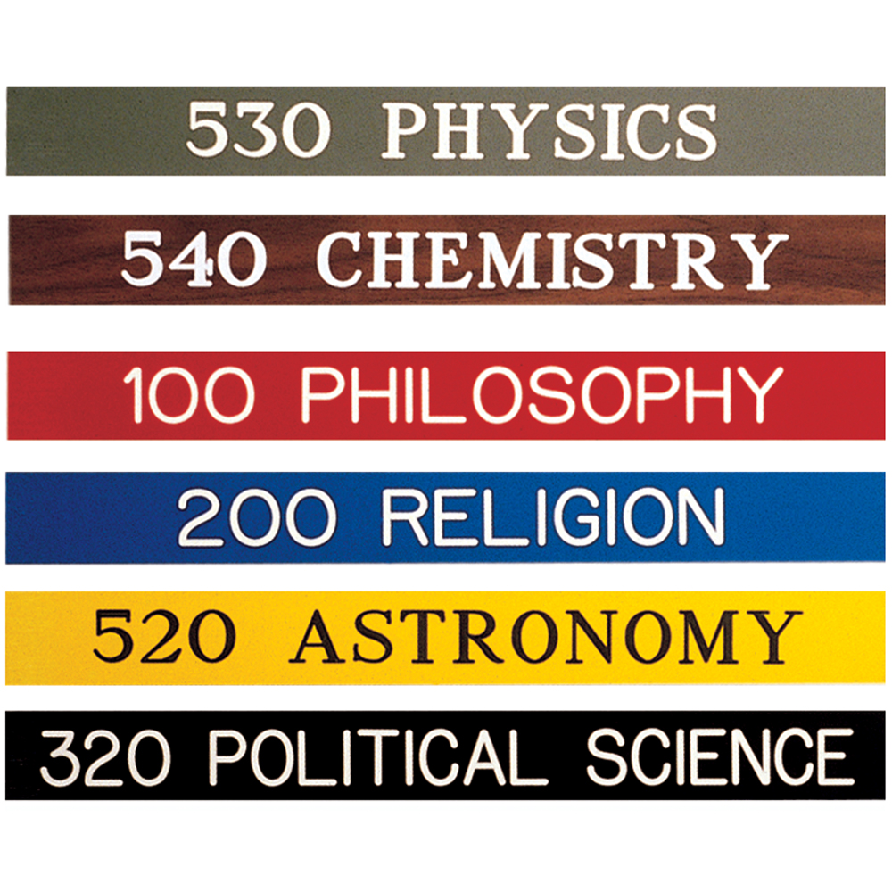 - Custom Engraved Dewey Decimal Section and Shelf Signs are professionally engraved and allow you to color coordinate signs and label shelves in the colors, fonts, and letter case you design