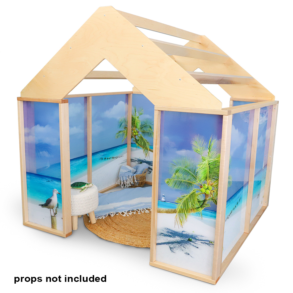 Set sail for excitement with the Nature View™ Play Beach House your very own seaside escape right in the classroom! Step inside to find vibrant seagulls soaring, playful dolphins splashing, clever hermit crabs scuttling, and a grand lighthouse standing tall. It's the ultimate spot for relaxing with a book, diving into beachy pretend play, or displaying your fantastic ocean-inspired creations (sorry props not included). Featuring wide doors for easy entry, a breezy pergola-style roof, and cool clear panels that keep the space bright and safe, this beach house brings the shore straight to you. Get ready to imagine, explore, and have a splashin' good time every day!