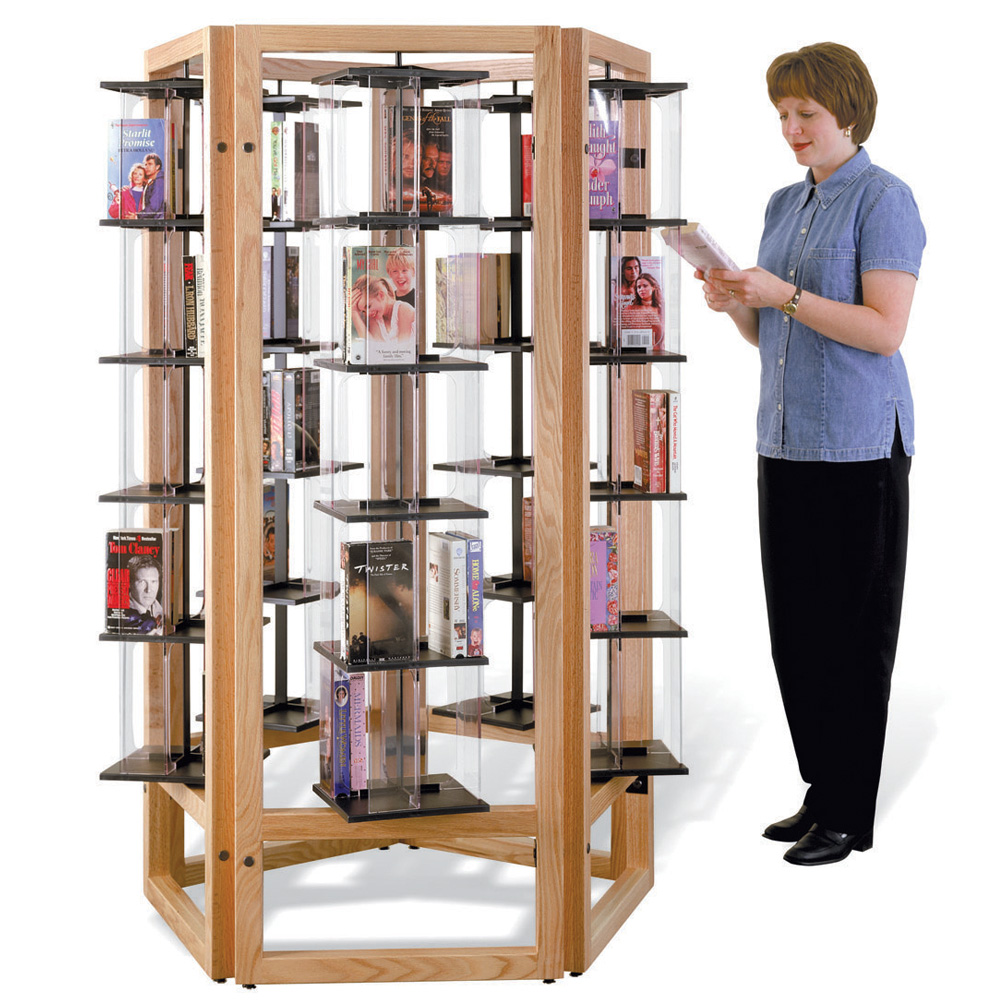 Capacity: 600 paperbacks, 300 VHS or 700 DVDs