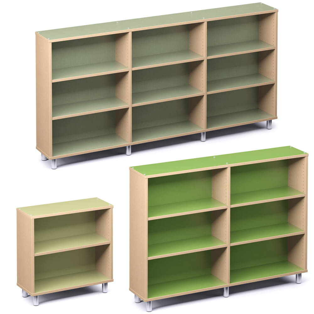 The Envision Wood Library Shelving Series offers a more modern approach to shelving design with sleek aluminum legs. The single-sided Inspire Radius Shelving can be combined with tables and lounge seating to create a multi-purpose Collaborative Areas. See Russwood® Inspire Radius Shelving for more options.