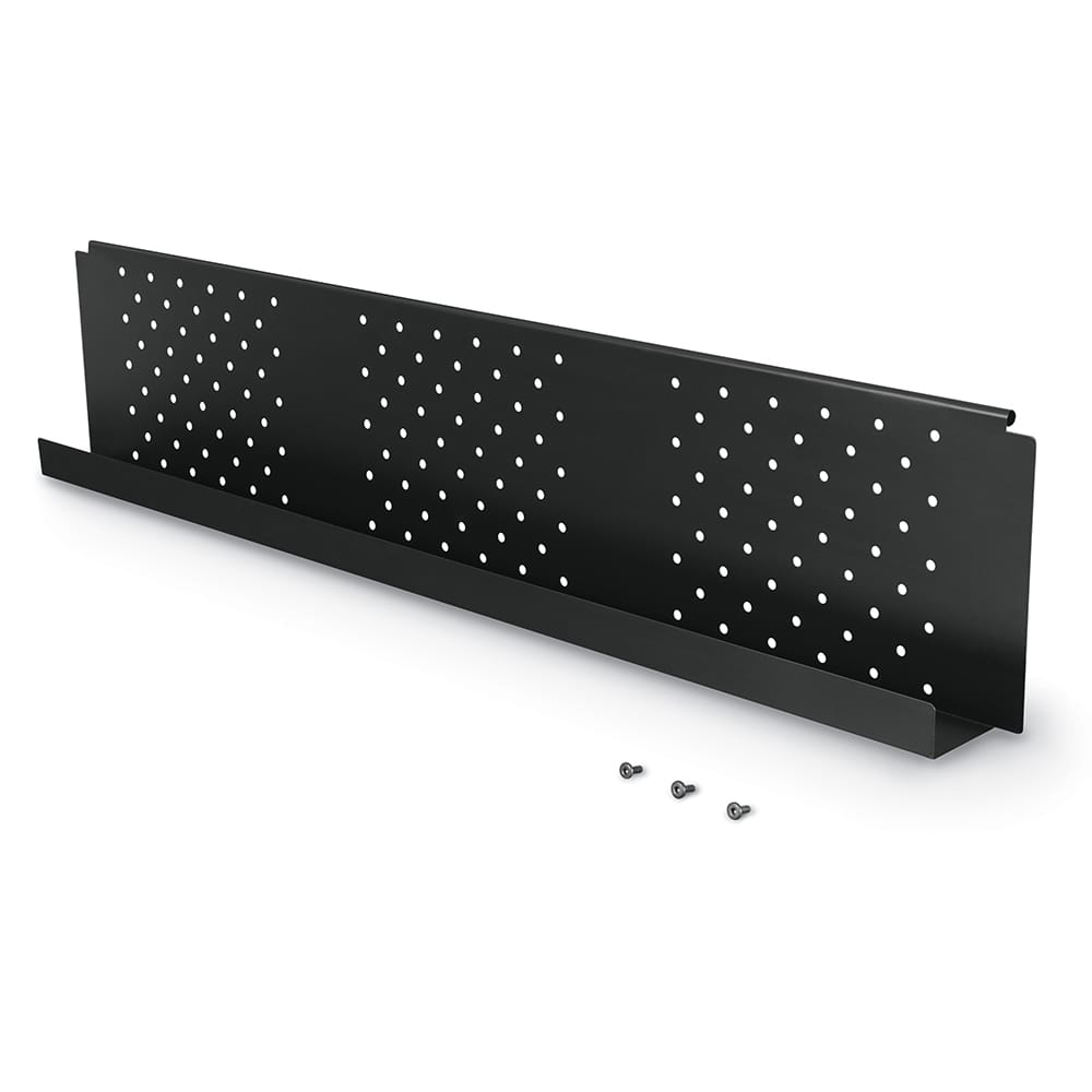 The MooreCo Modesty Panel is a sleek and functional enhancement designed to add privacy and visual structure to MooreCo Height Adjustable Flipper Tables. Crafted from perforated black steel, it offers both style and ventilation, making it a practical addition to collaborative learning environments, training rooms, or professional workspaces. The panel attaches easily to compatible flipper tables, providing a clean and modern look while concealing under-table clutter.